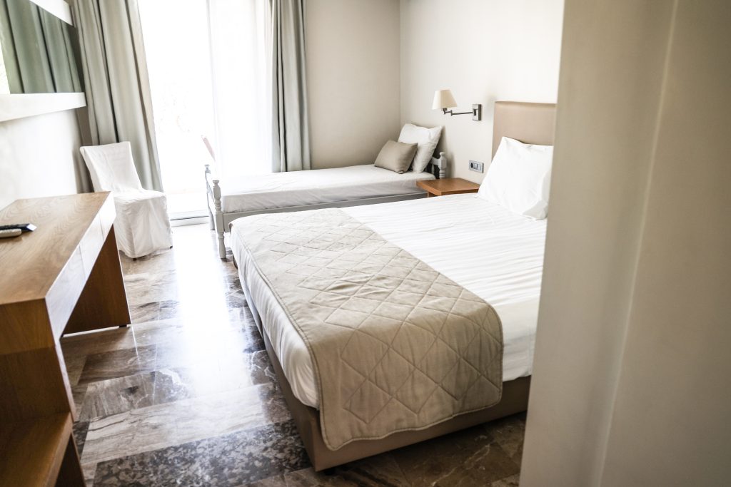 מלון בבעלות משפחתית של משפחה יוונית מקסימה. בעלת המקום, כריסטינה, עוסקת מעל ארבעים שנה בעסקי תיירות, ולה גם מתחם קמפינג ומסעדה על החוף – שם נאכל את ארוחות הערב. במלון בו נלון 20 חדרים בלבד, כולם זהים בגודלם ובעיצוב הפנים שלהם. החדרים חדישים, נוחים ויפים, ומציעים את כל מה שאדם צריך כדי להירגע, לנוח ולהתחדש: מיזוג אוויר, מים חמים וקרים, מיטות נוחות, מטבחון, טלוויזיה ומרפסת באוויר הפתוח לנוף עוצר נשימה.